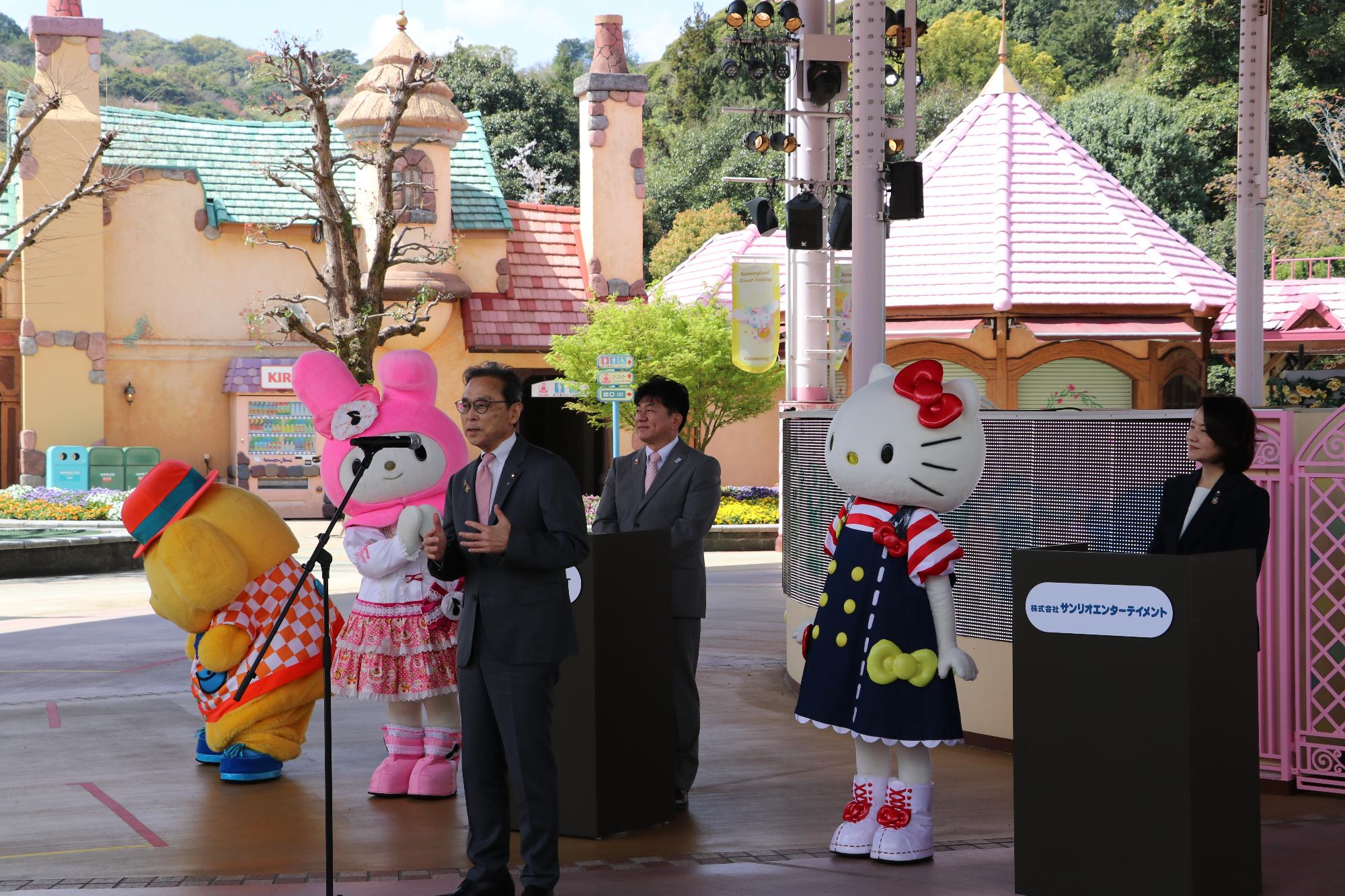この度、株式会社サンリオエンターテイメント(代表取締役社長:小巻 亜矢)と杵築市(市長:永松 悟)、日出町(町長:安部 徹也)の三者は、この地域を愛し、次世代へ豊かな未来を引き継ぐため「みんななかよく」の理念に基づき、相互に深い友好関係を築くとともに、ハーモニーランドのエンタメリゾート化に向けた取り組みをより一層推進するため、3者によるフレンドシップ宣言を行いました。