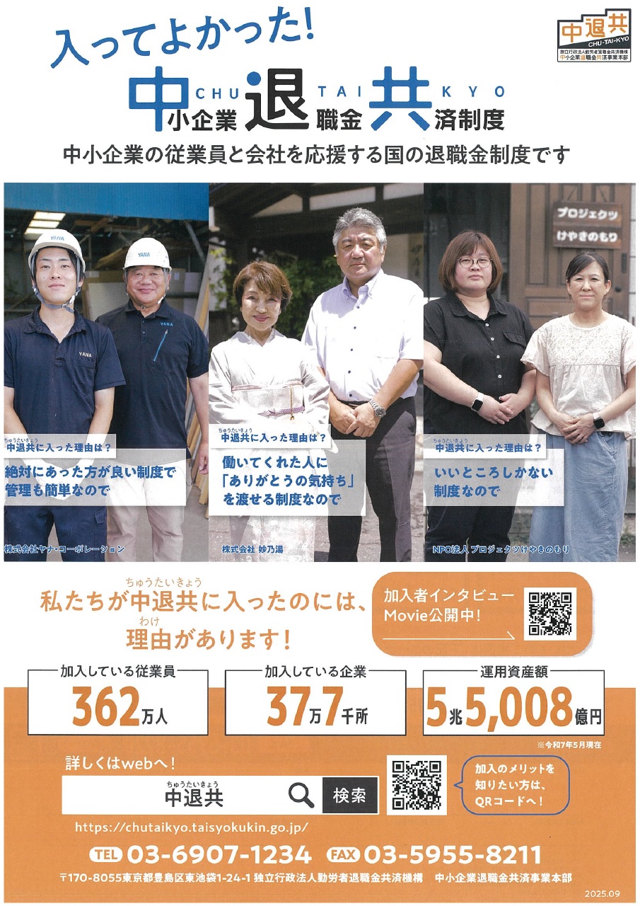 中小企業の皆さん!国がサポートする退職金制度をご活用ください【中小企業退職金共済事業本部】
